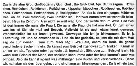 Rotkäppchen & der Wolf erzählt in einer flüssigen, schwer verständlichen Sprache eines Wernicke Aphasikers: