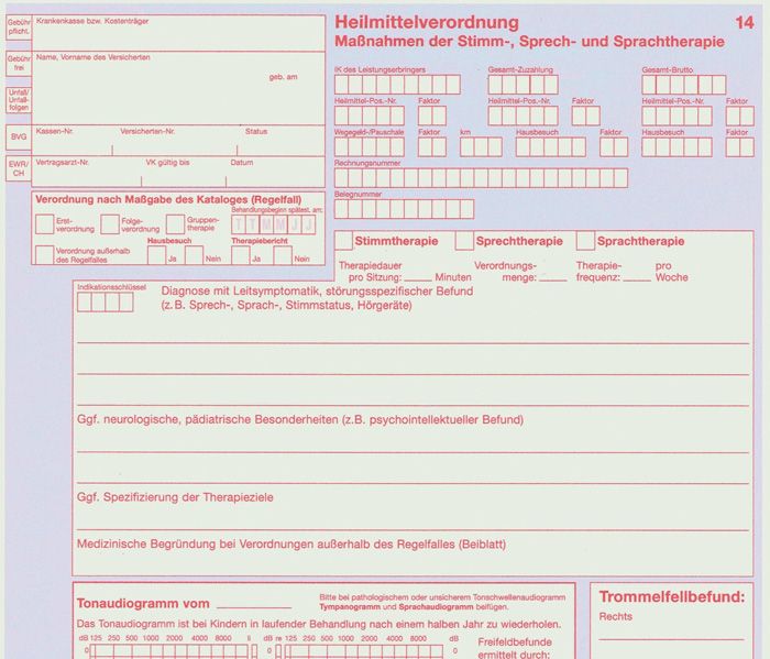 Mit der Erstverordnung wird der sog. Regelfall eröffnet, der bei den Indikationen SP5, SP6 und SC1 60 Therapieeinheiten umfasst. Verordnungen, die darüber hinaus gehen, müssen von der Krankenkasse laut Heilmittelrichtlinien genehmigt werden. In der Praxis haben die meisten Kassen aber inzwischen davon Abstand genommen und verzichten auf das Genehmigungsverfahren. Es sind Langzeittherapien möglich, die sich über Jahre erstrecken, vorausgesetzt, die verschreibenden Ärzte und die Krankenkassen tragen das mit.